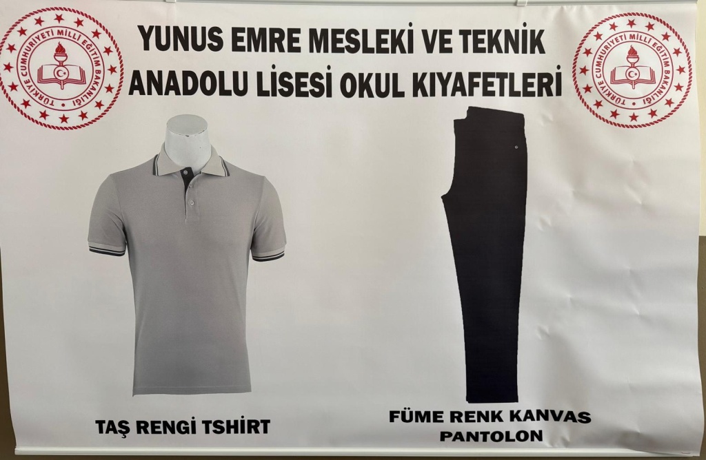 Formamızın örnekleri yayınladığımız fotoğrafta yer almaktadır. Okulumuza ait kıyafetler okul adı belirtmek suretiyle piyasadaki ticari firmalardan temin edilebilmektedir. Kıyafet uygulamamız tüm sınırflarımız için geçerlidir